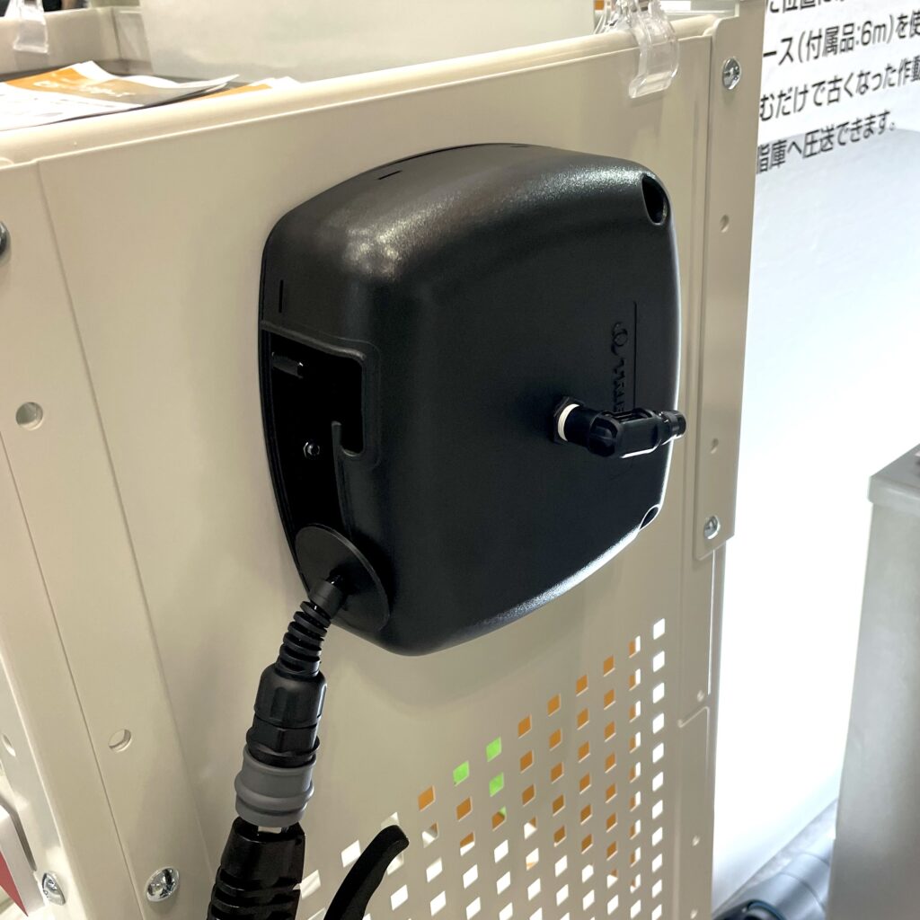 ホースやガンがぶら下がらないので、安全性も作業効率もグッとアップします。